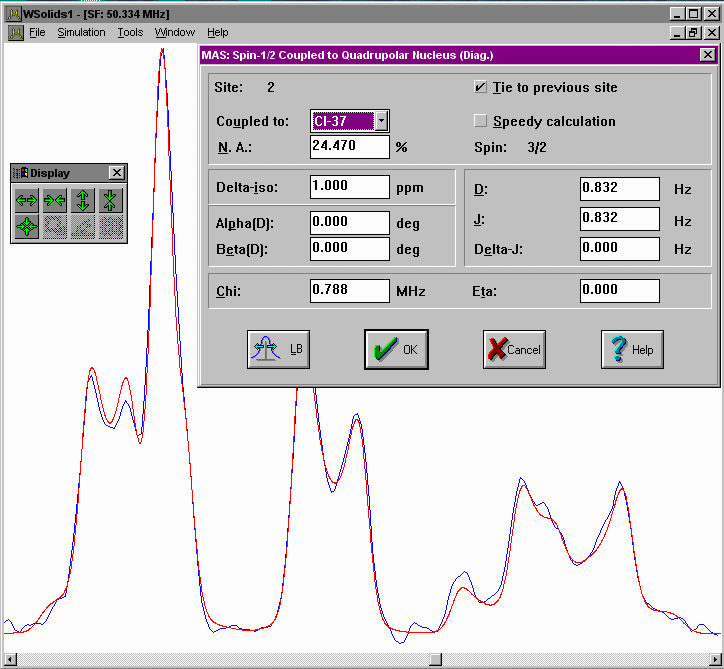 This picture also illustrates the workings of the Tie to previous site feature: the parameters of the C-13,Cl-37 isotopomer are tied to those of the C-13,Cl-35 isotopomer by using the ratios of the magnetogyric ratios and nuclear quadrupole moments as factors.